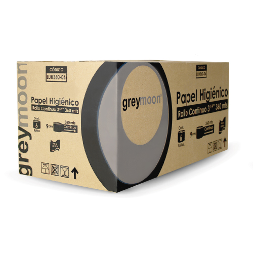 PAPEL HIGIÉNICO GREYMOON 360 MTS C/6 ROLLOS